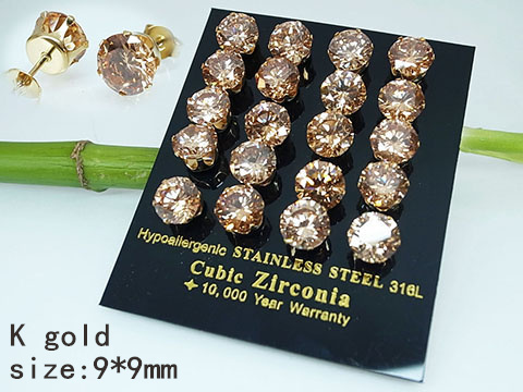 Home > Stainless Steel Jewelry Golden Champagne Round Zircon Earrings