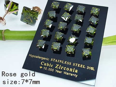 Home > Stainless Steel Jewelry Rose gold Olive green Square Zircon Earrings