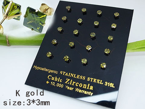 Stainless Steel Jewelry Golden Olive green Square Zircon Earrings