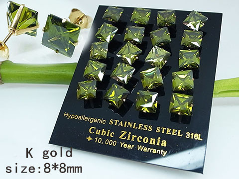 Stainless Steel Jewelry Golden Olive green Square Zircon Earrings