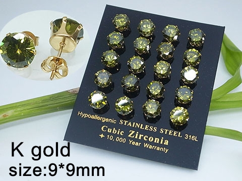 Stainless Steel Jewelry Golden Olive green Round Zircon Earrings