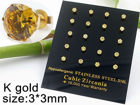 Stainless Steel Jewelry Golden Yellow Round Zircon Earrings