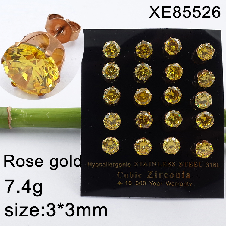 Stainless Steel Jewelry Rose gold Yellow Round Zircon Earrings