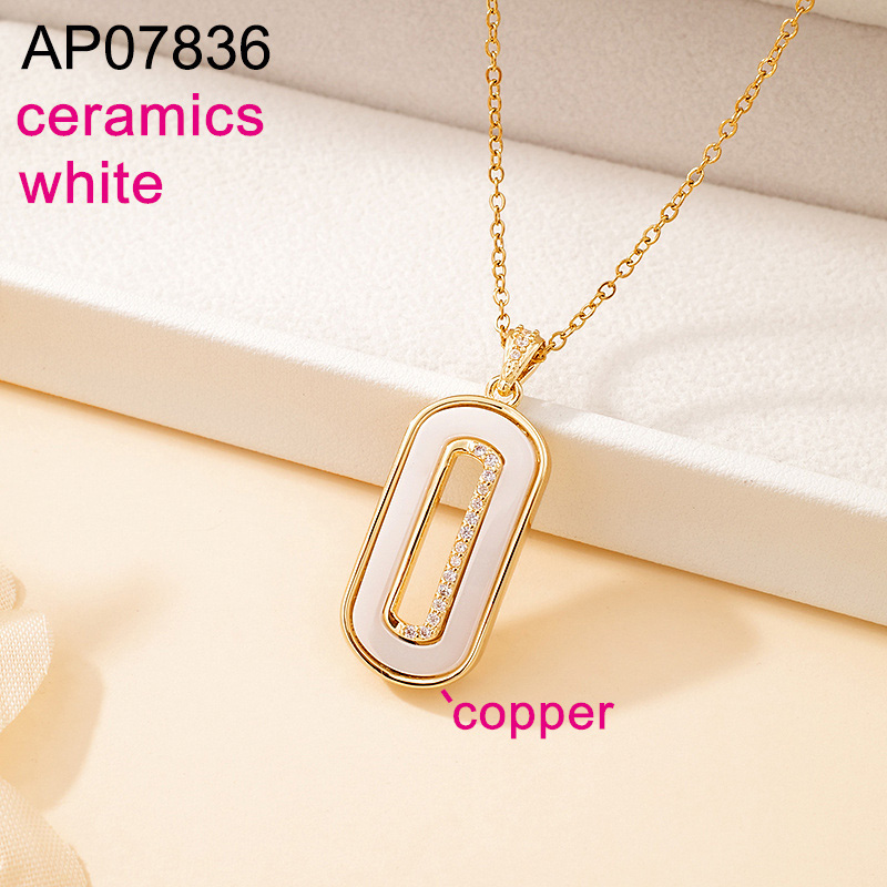 Level B Fashion Jewelry New Trendy Women Jewelry Goldlen Oval White Ceramics Pendant;Material:copper (cobre)