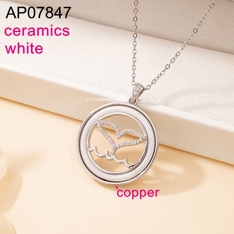 Home > Level B Fashion Jewelry New Trendy Women Jewelry Steel Color Summer beach Animal Fish Tail White Ceramics Pendant;Material:copper (cobre)