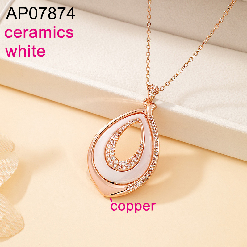Level B Fashion Jewelry New Trendy Women Jewelry Rose gold Water Drip White Ceramics Pendant;Material:copper (cobre)