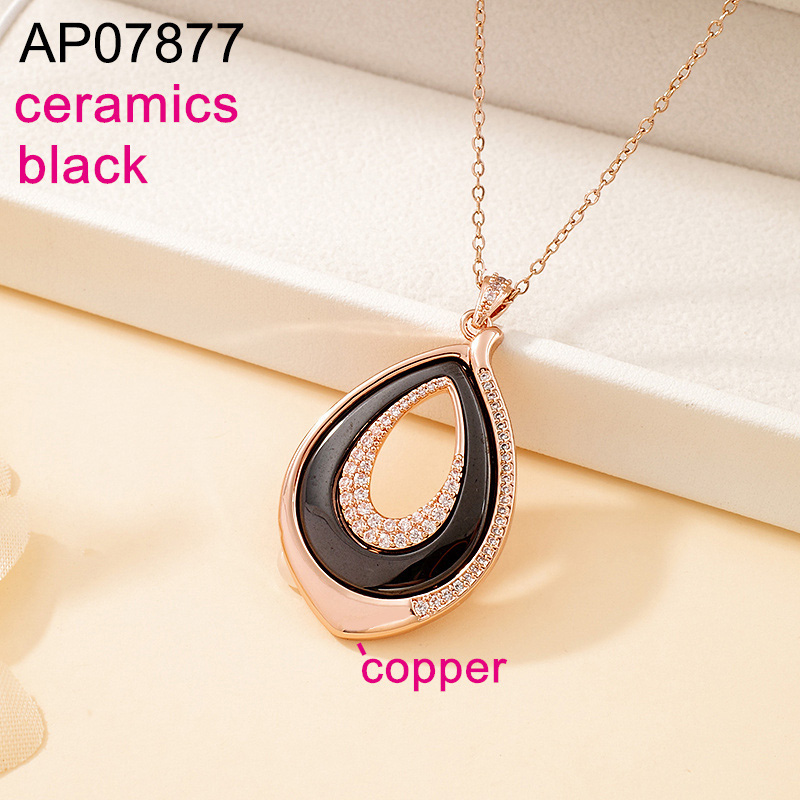 Level B Fashion Jewelry New Trendy Women Jewelry Rose gold Water Drip Black Ceramics Pendant;Material:copper (cobre)