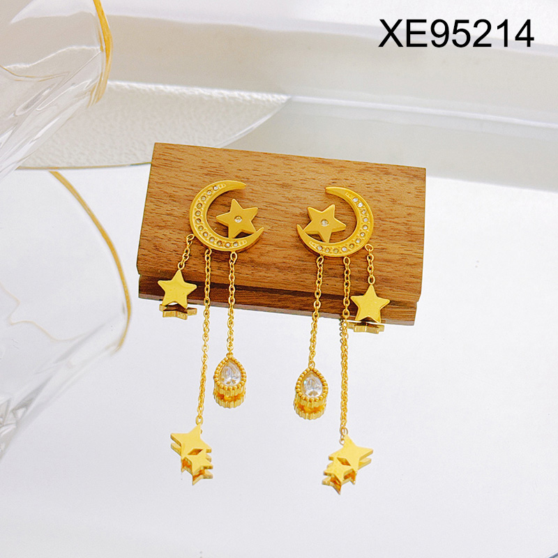 Home > Level B Stainless Steel New Trendy Women Jewelry Star Moon Golden Earrings