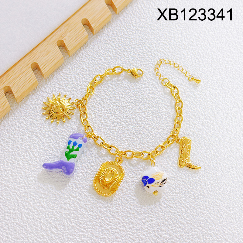Level B Stainless Steel New Trendy Women Jewelry Hat Shoe Golden Bracelet