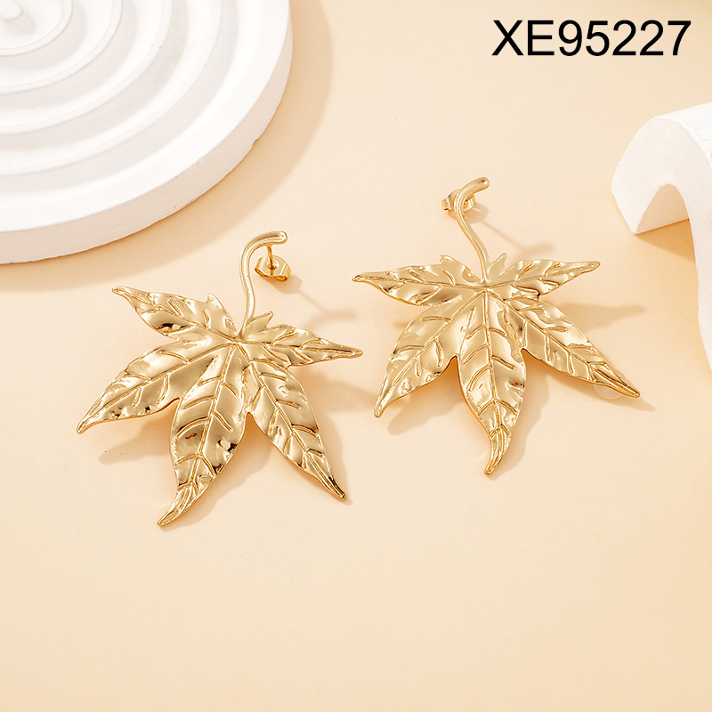 Home > Level B Stainless Steel New Trendy Women Jewelry Leaf Golden Earrings
