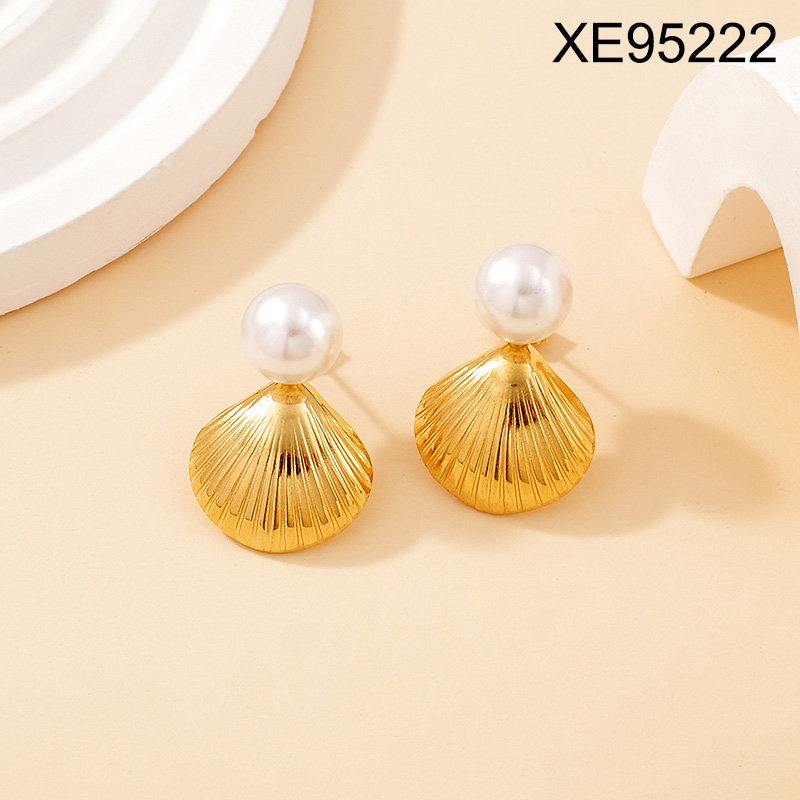 Level B Stainless Steel New Trendy Women Jewelry Pearl Style/Plastic Beads Summer beach Animal Shell Golden Earrings