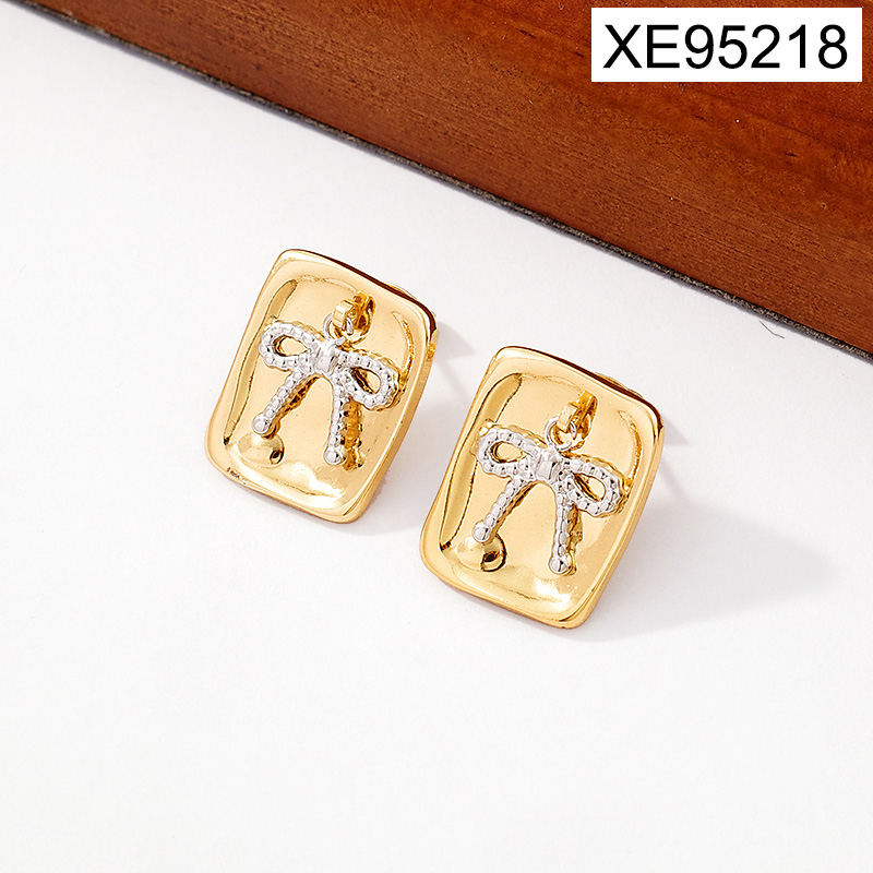 Level B Stainless Steel New Trendy Women Jewelry Rectangle Bowknot Two Tone Earrings