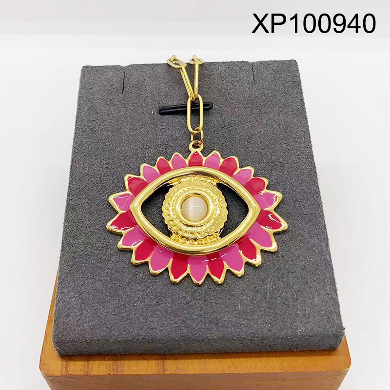 Level B Stainless Steel New Trendy Women Jewelry Drip Oil/Enamel Eye Golden Pendant