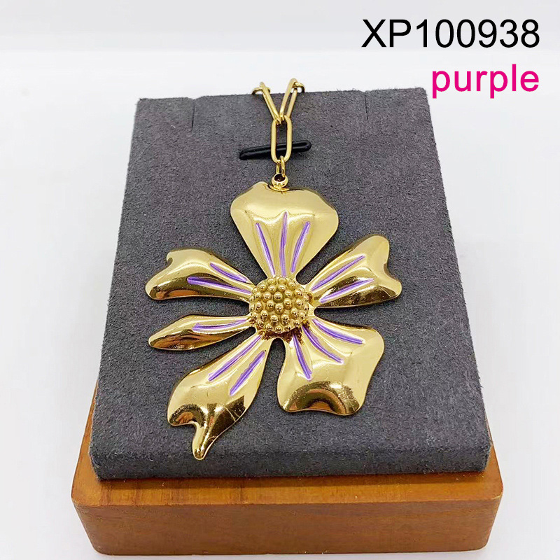 Level B Stainless Steel New Trendy Women Jewelry Purple Flower Golden Pendant