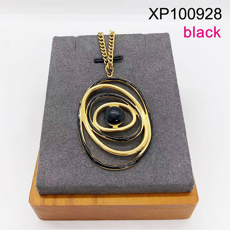 Home > Level B Stainless Steel New Trendy Women Jewelry Drip Oil/Enamel Black Oval Golden Pendant