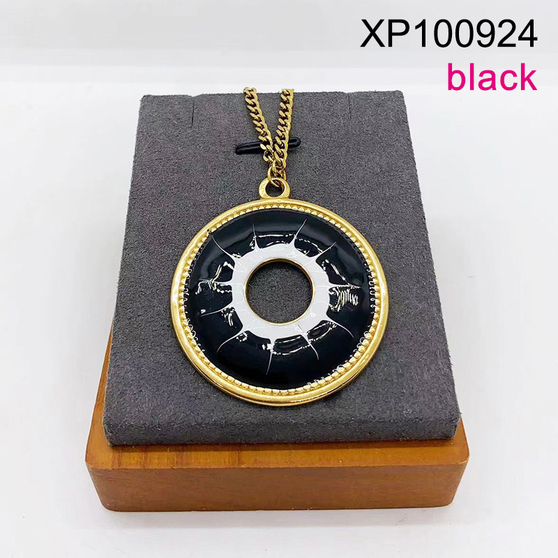 Level B Stainless Steel New Trendy Women Jewelry Drip Oil/Enamel Black Round Golden Pendant