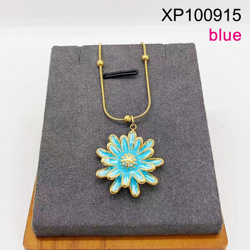 Home > Level B Stainless Steel New Trendy Women Jewelry Drip Oil/Enamel Blue Flower Golden Pendant