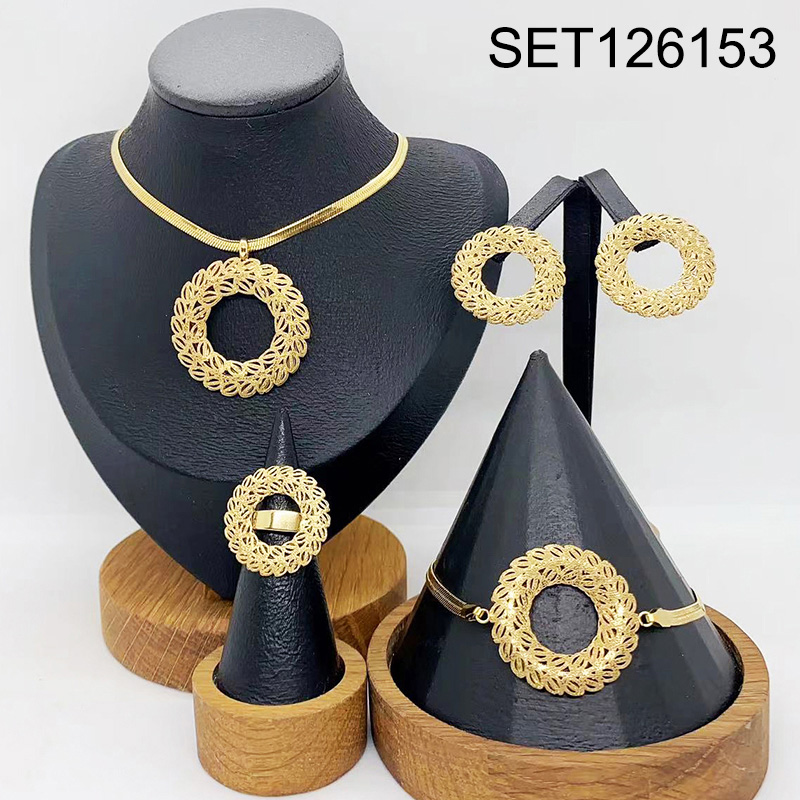 Level B Stainless Steel New Trendy Women Jewelry Round Golden 4pcs SET