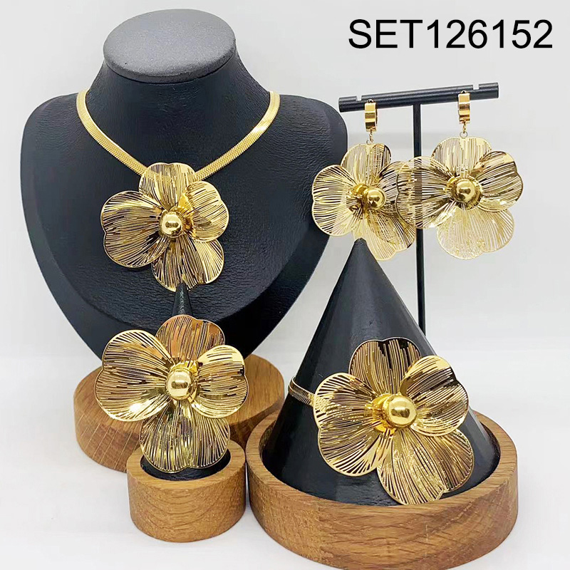 Level B Stainless Steel New Trendy Women Jewelry Flower Golden 4pcs SET