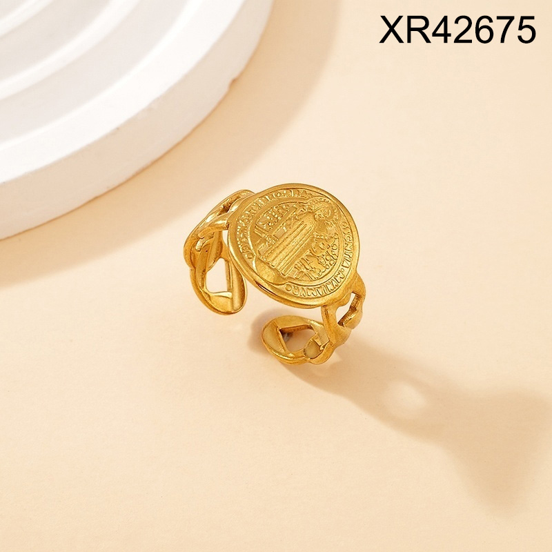 Level C Stainless Steel New Trendy Women Jewelry Religion Golden Open Rings;Ring size can be adjusted freely