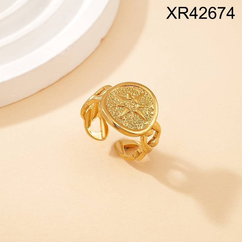 Level C Stainless Steel New Trendy Women Jewelry Round Golden Open Rings;Ring size can be adjusted freely