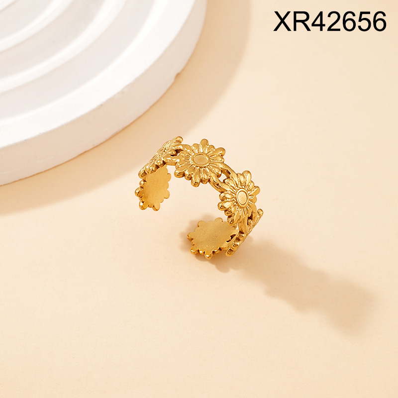 Level C Stainless Steel New Trendy Women Jewelry Flower Golden Open Rings;Ring size can be adjusted freely