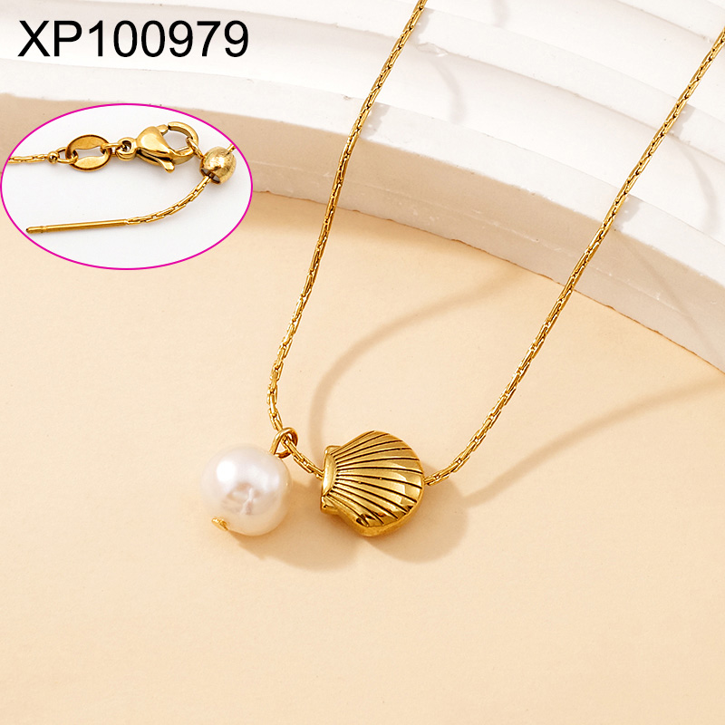 Home > Level C Stainless Steel New Trendy Women Jewelry Pearl Style Summer beach Animal Shell Golden Pendant