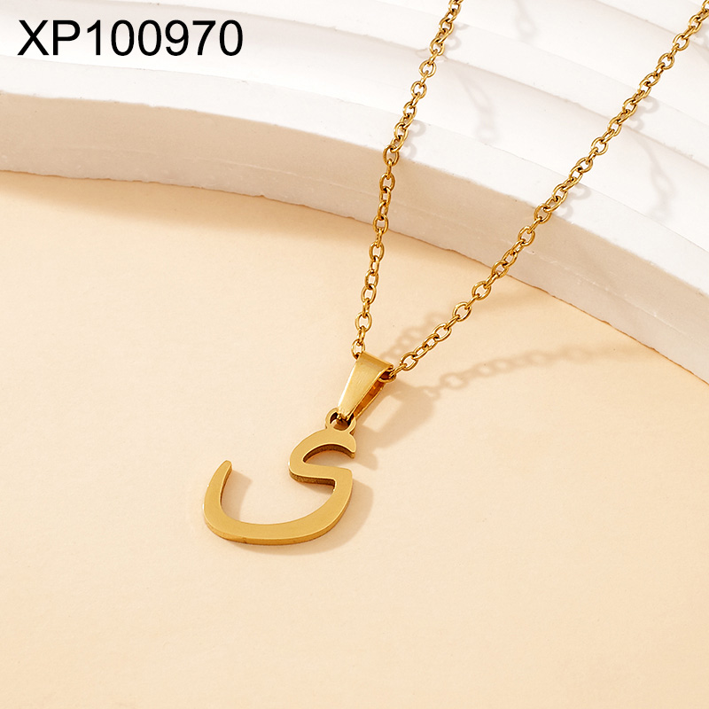 Home > Level C Stainless Steel New Trendy Women Jewelry Arabic Alphabet Golden Pendant