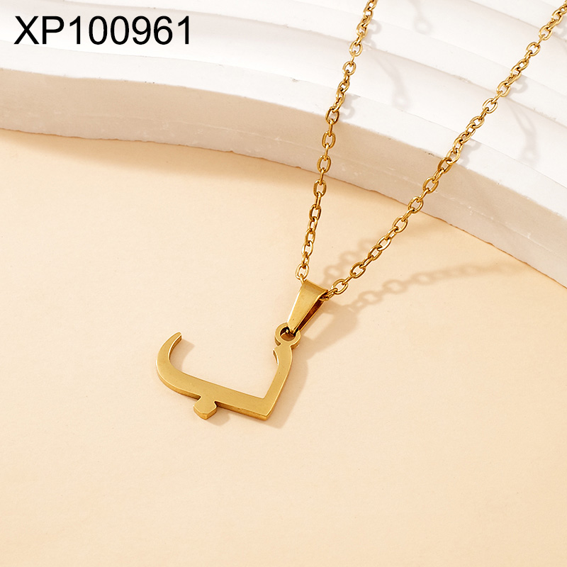 Home > Level C Stainless Steel New Trendy Women Jewelry Arabic Alphabet Golden Pendant