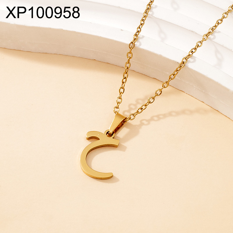 Home > Level C Stainless Steel New Trendy Women Jewelry Arabic Alphabet Golden Pendant