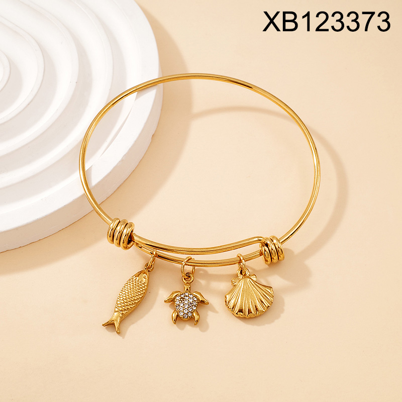 Level B Stainless Steel New Trendy Women Jewelry Summer beach Animal Turtle Fish Shell Golden Bangle