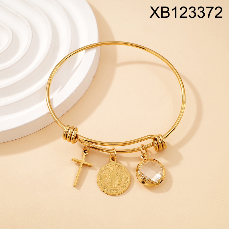 Level B Stainless Steel New Trendy Women Jewelry Religion Cross Golden Bangle