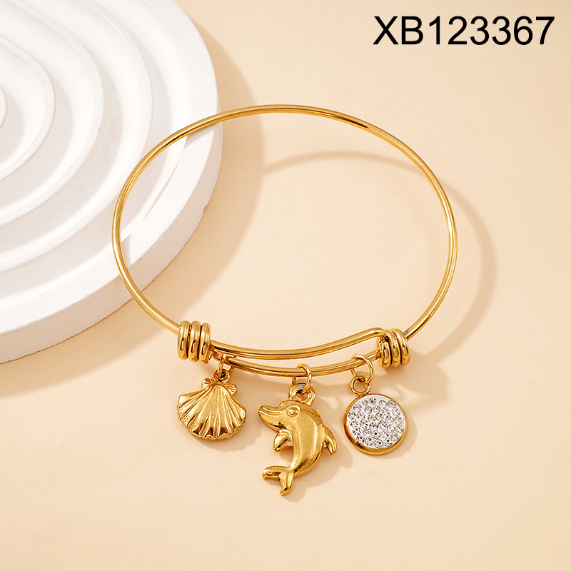 Level B Stainless Steel New Trendy Women Jewelry Summer beach Animal Dolphin Shell Round Golden Bangle