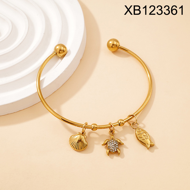 Level B Stainless Steel New Trendy Women Jewelry Summer beach Animal Turtle Shell Fish Golden Open Bangle;Bangle size can be adjusted freely