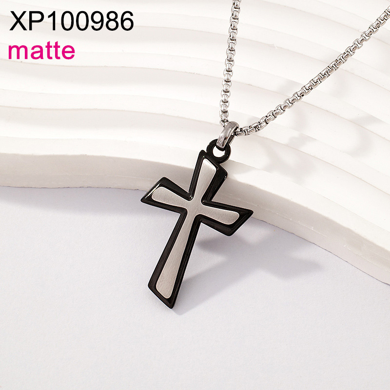 Level B Stainless Steel New Trendy Man Jewelry Cross Two Tone Matte Pendant