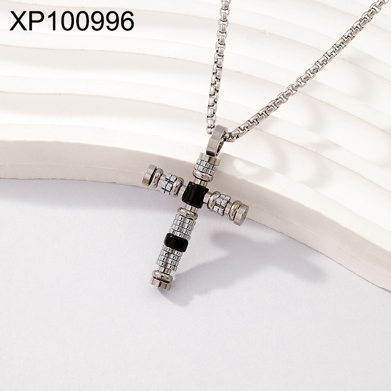 Level B Stainless Steel New Trendy Man Jewelry Cross Steel color Pendant