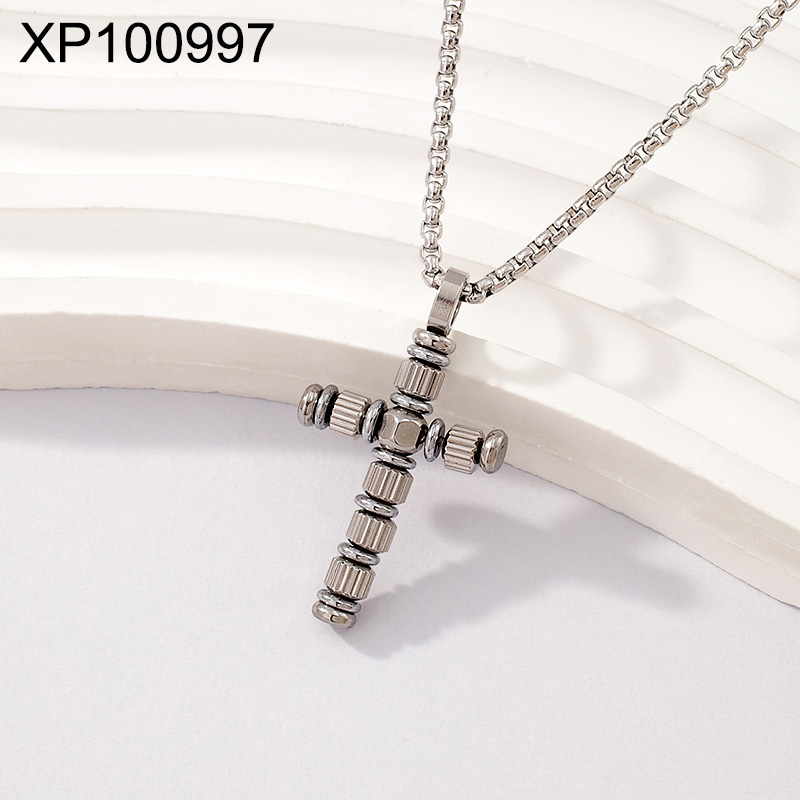 Level B Stainless Steel New Trendy Man Jewelry Cross Steel color Pendant