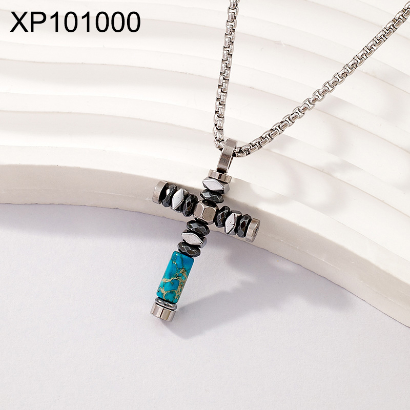 Level B Stainless Steel New Trendy Man Jewelry Cross Steel color Pendant