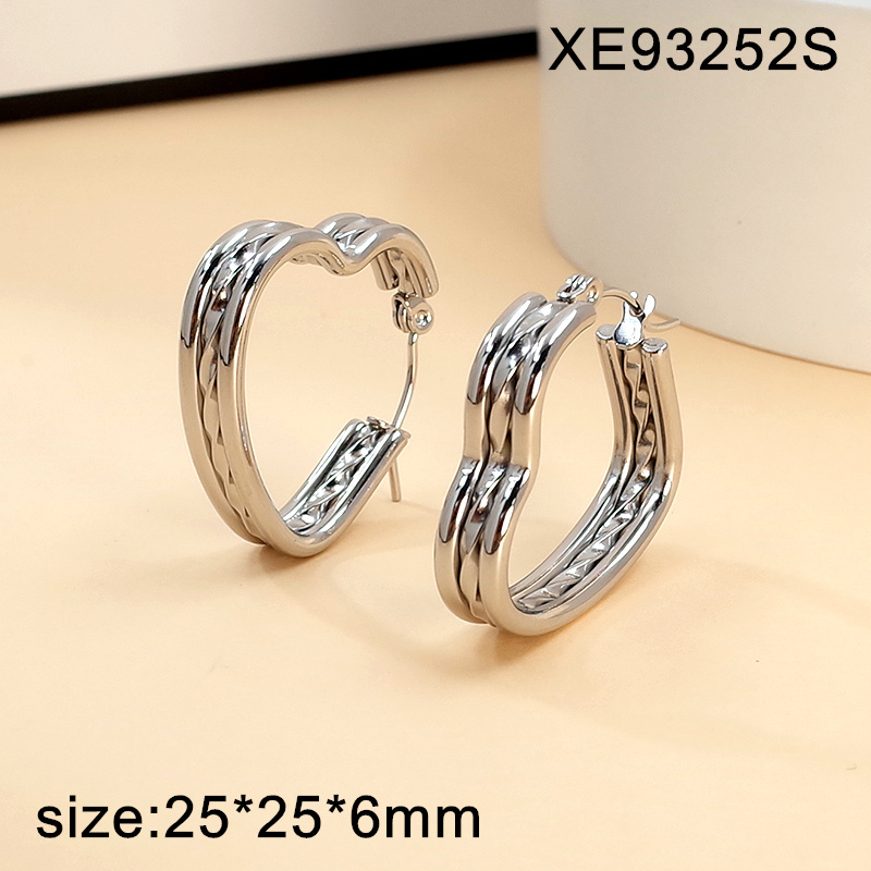 Level A Stainless Steel New Trendy Women Jewelry Heart Steel color Valentine's Day Hoop Earrings