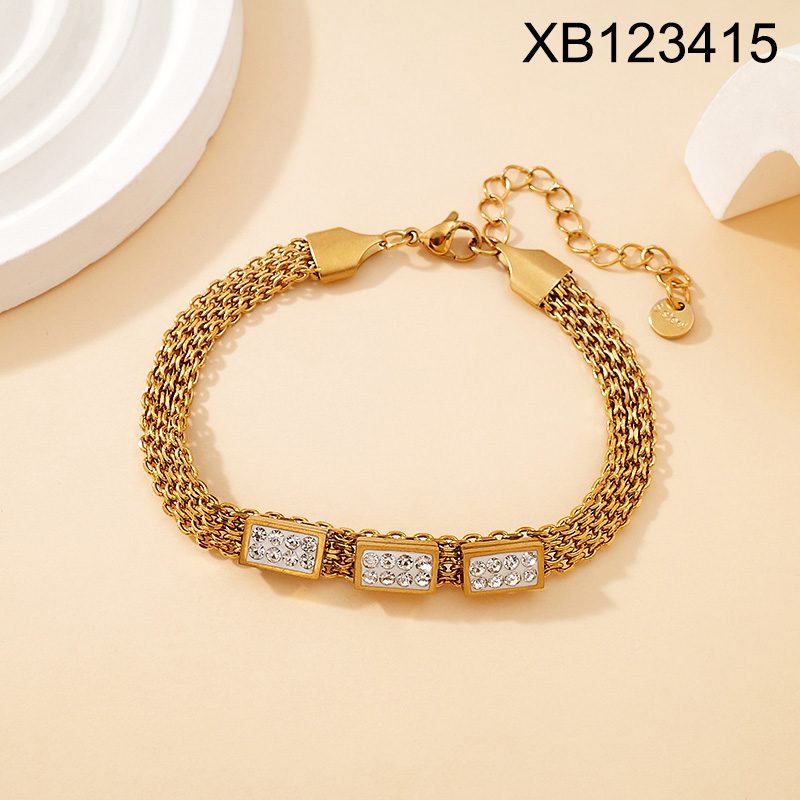 Level B Stainless Steel New Trendy Women Jewelry Rectangle Golden Bracelet