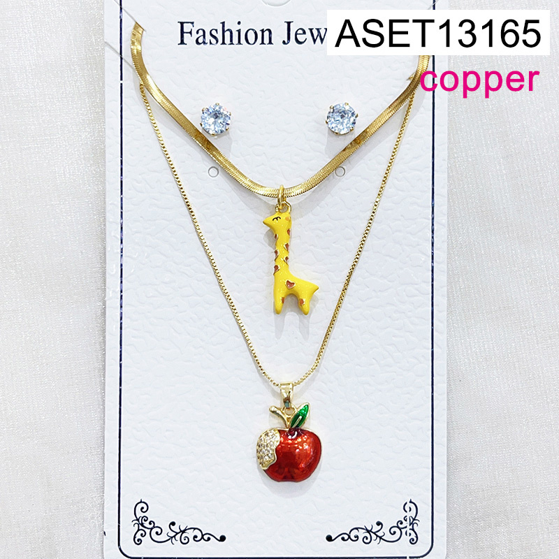 Home > Level B Fashion Jewelry New Trendy Women Jewelry Two Layers Chain Christmas Golden SET;Material:copper (cobre)