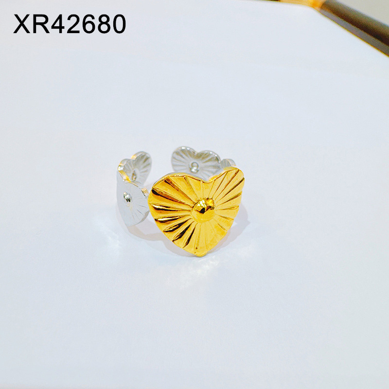 Level B Stainless Steel New Trendy Women Jewelry Heart Two Tone Open Rings;Ring size can be adjusted freely