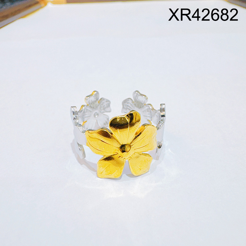 Home > Level B Stainless Steel New Trendy Women Jewelry Flower Two Tone Open Rings;Ring size can be adjusted freely