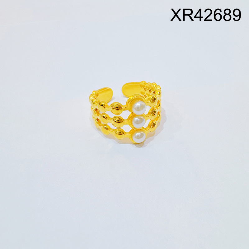 Home > Level B Stainless Steel New Trendy Women Jewelry Pearl Style/Plastic Beads Golden Open Rings;Ring size can be adjusted freely