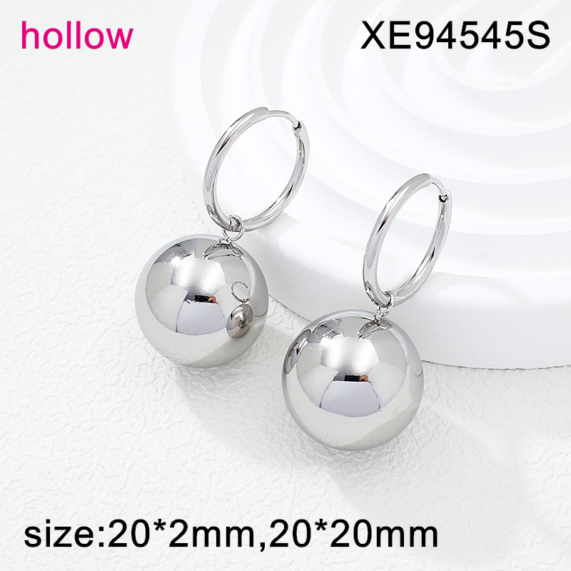 Home > Level A Stainless Steel New Trendy Women Jewelry Hollow Round Bead Steel color Hoop Earrings