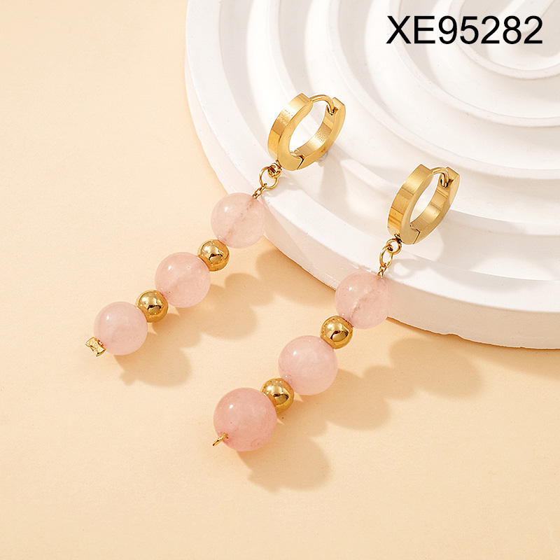 Home > Level B Stainless Steel New Trendy Women Jewelry Natural Stone Golden Hoop Earrings