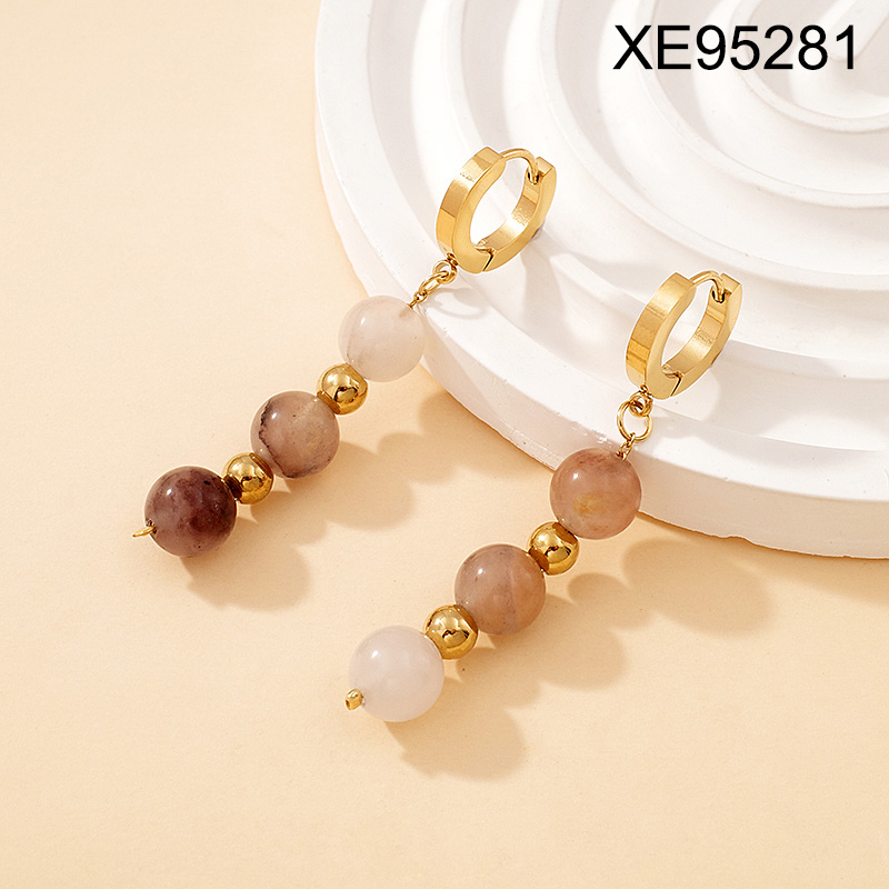 Home > Level B Stainless Steel New Trendy Women Jewelry Natural Stone Golden Hoop Earrings