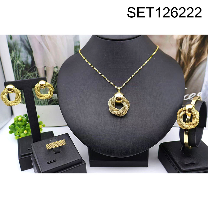 Level B Stainless Steel New Trendy Women Jewelry Multi Layer Grid Golden 4pcs SET