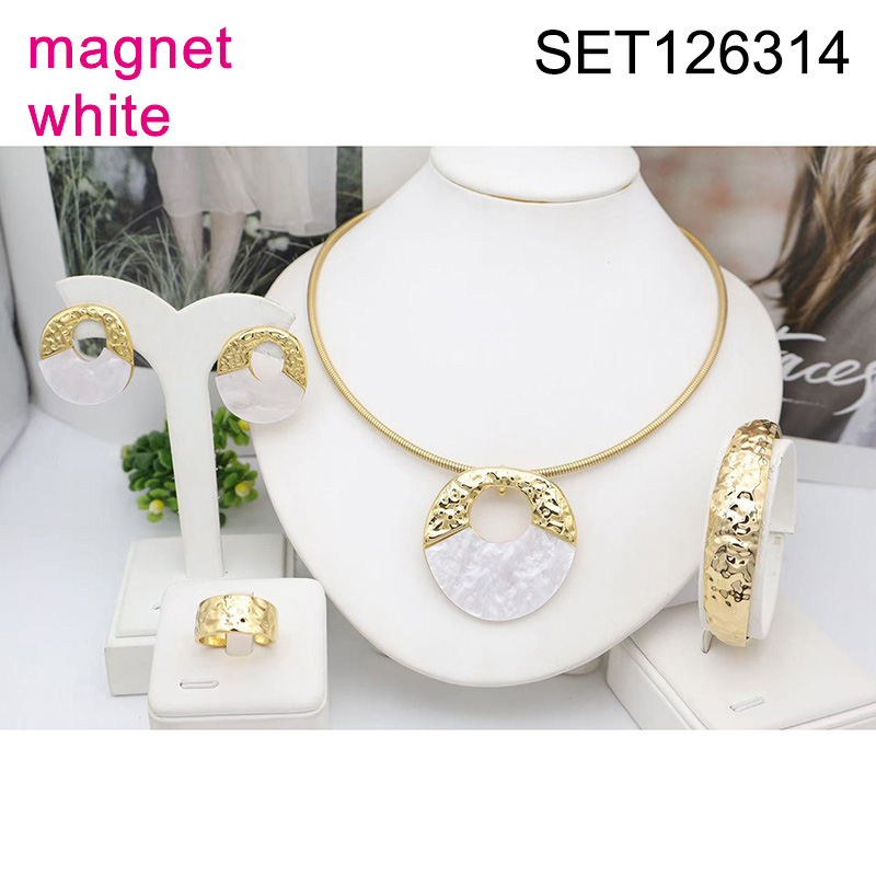 Level B Stainless Steel New Trendy Women Jewelry White Round Golden Magnet buckle 4pcs SET
