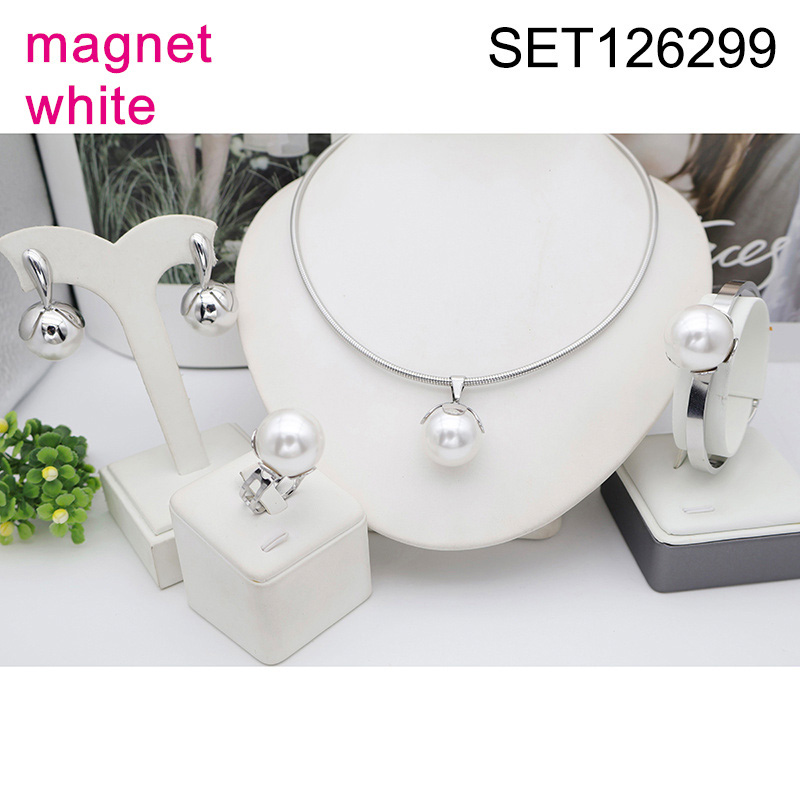 Home > Level B Stainless Steel New Trendy Women Jewelry Pearl Style/White Plastic Beads Steel color Magnet buckle 4pcs SET
